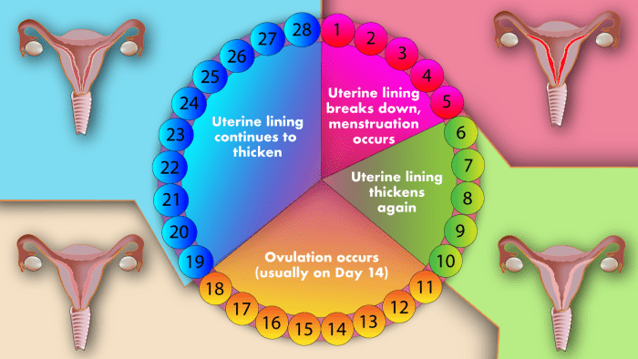 In instance it wasn't obvious, the ovarian cycle is so named because it happens in your ovaries; the uterine cycle is so named because information technology happens in your uterus. Menstruum, better known equally your menstruation, is the first stage of the uterine cycle. This is where the body clears out the unused uterine lining and unfertilized egg. From there, the torso enters the proliferative phase, which is where your body starts preparing the uterine lining all over once again. This is followed by the secretory phase, which is where progesterone is pumped into your body to prime the lining to receive a fertilized egg. Progesterone increases your blood flow, which can heighten your basal torso temperature, and uterine secretions.